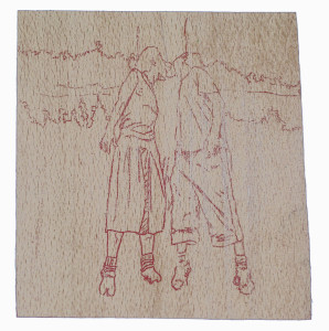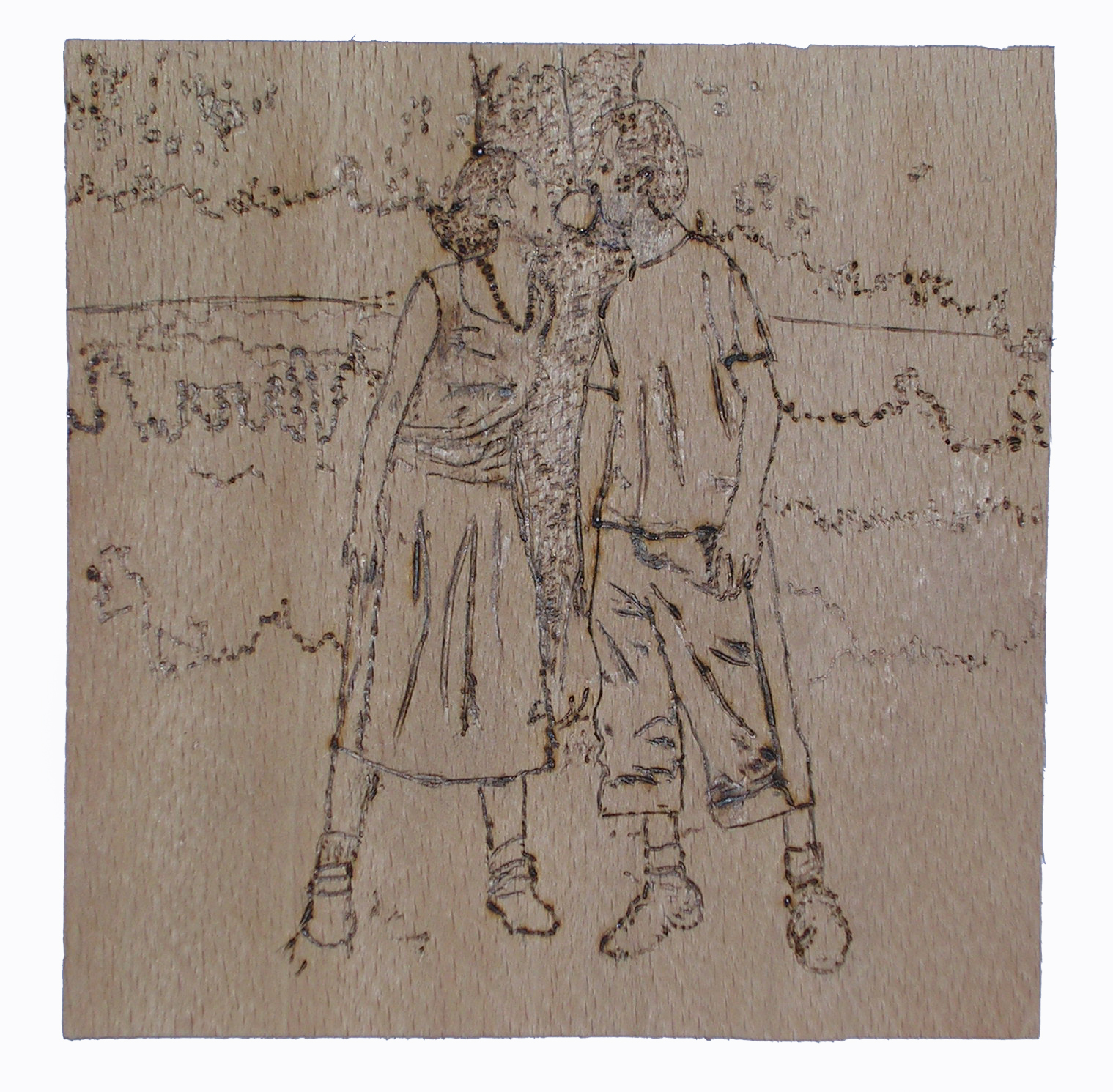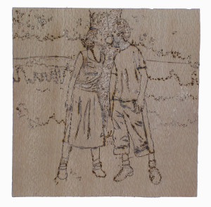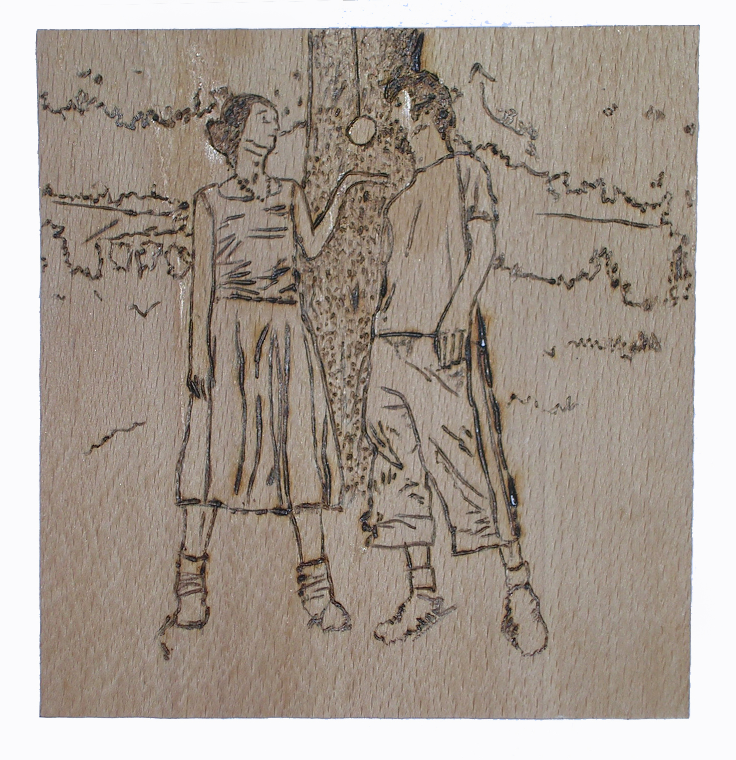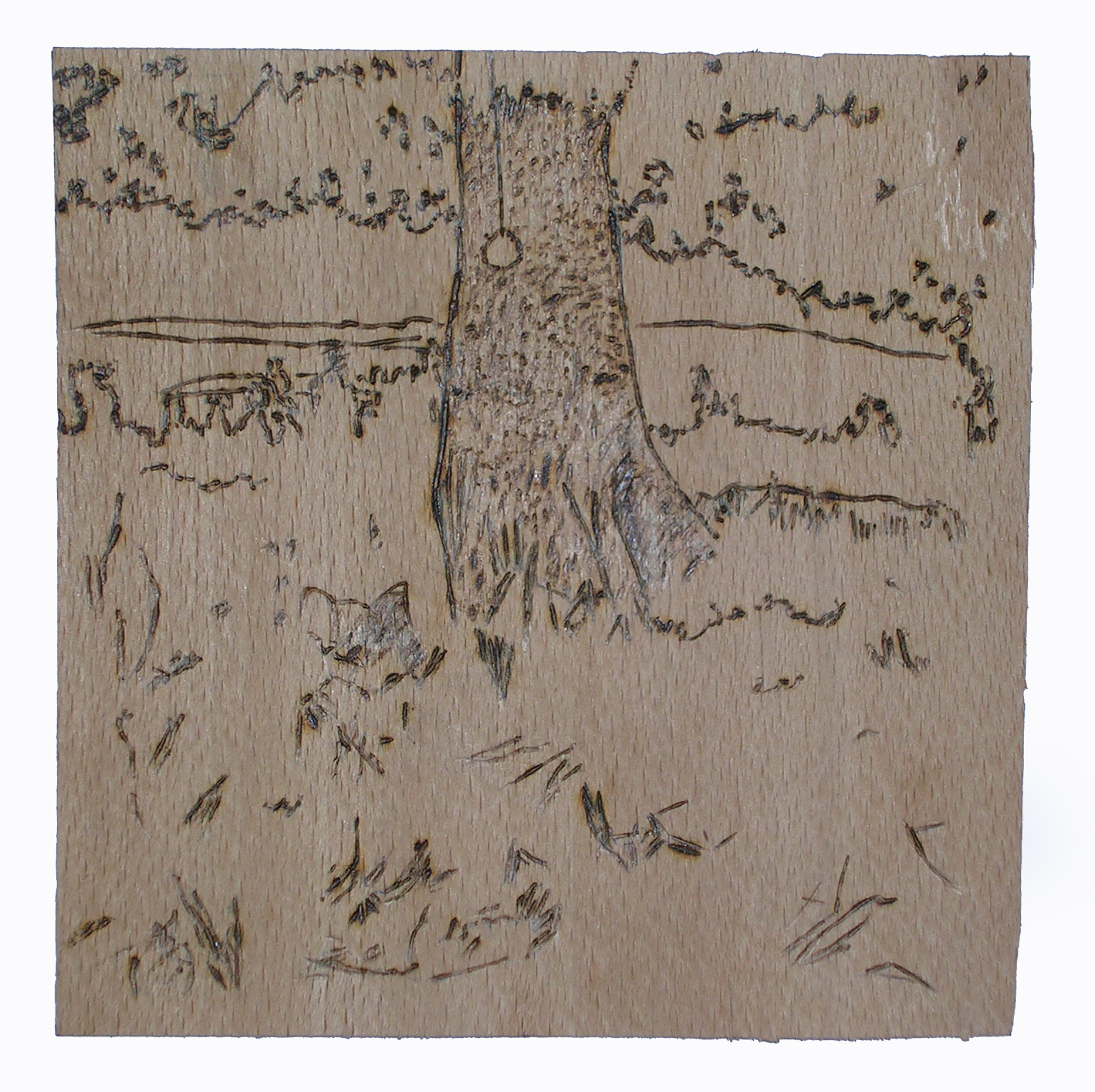 _pirografia su lamina di faggio e matita colorata_20x20cm. cad.