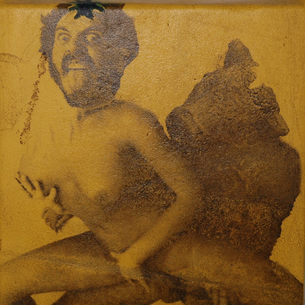 _2005_stampa transfert e acquaforte su raso, foglia d’oro_18x18cm.