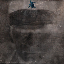 2005_stampa transfert e stampo calcografico, foglia d’oro e d’argento su raso_27x27cm. cad.