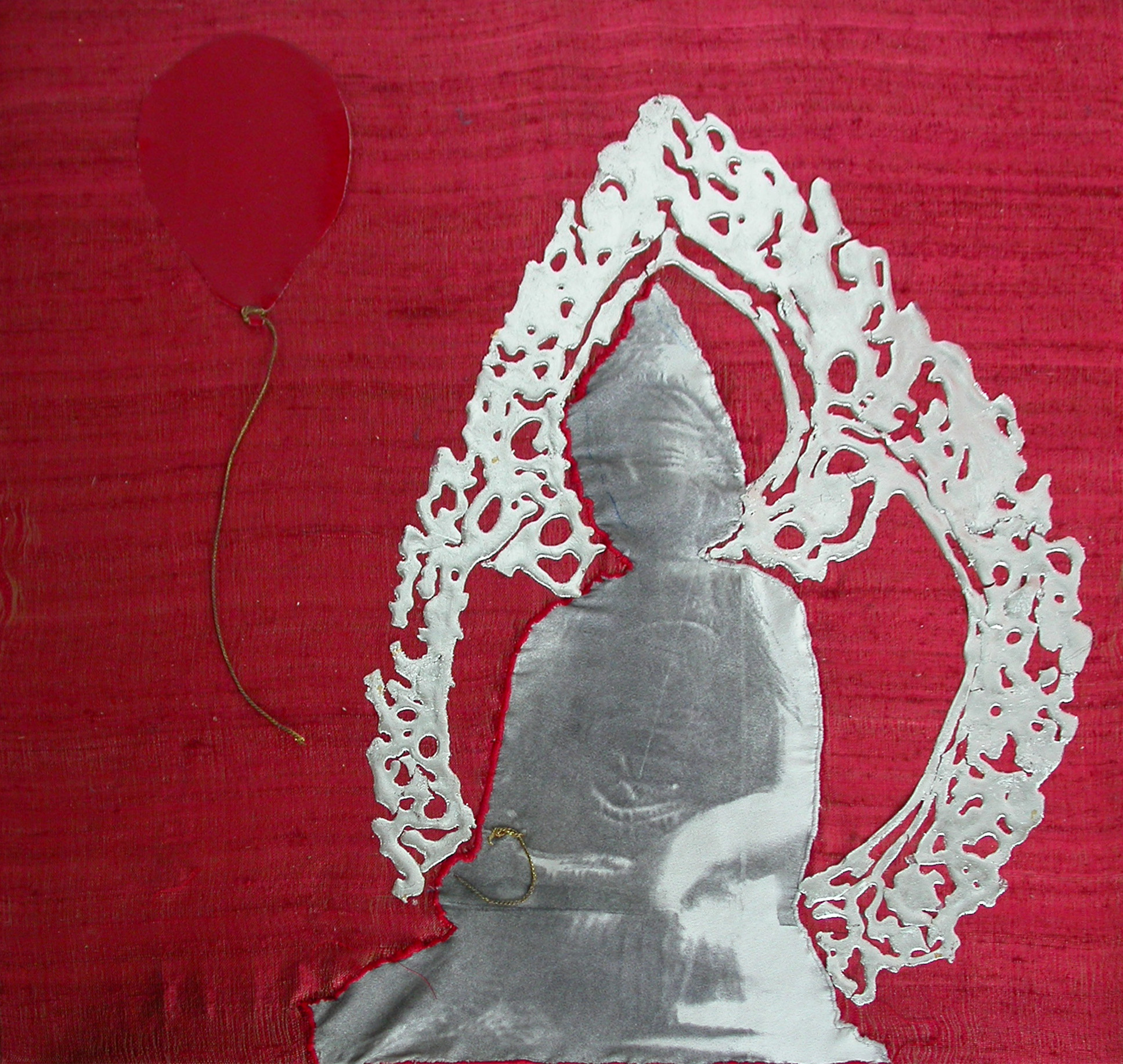 2010_stampa transfert, colla, legno, rame, plastica, foglia d’argento su seta_50x50cm.
