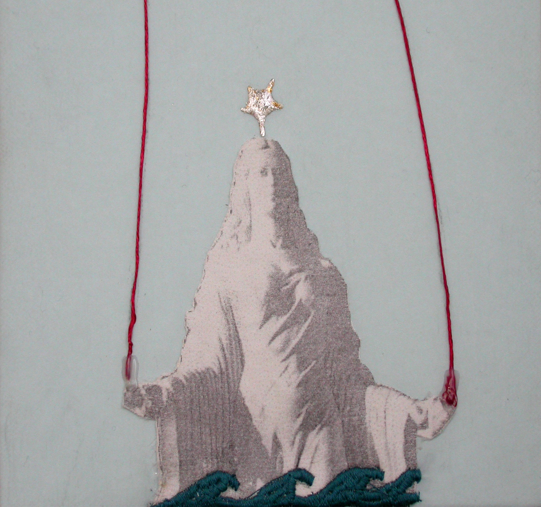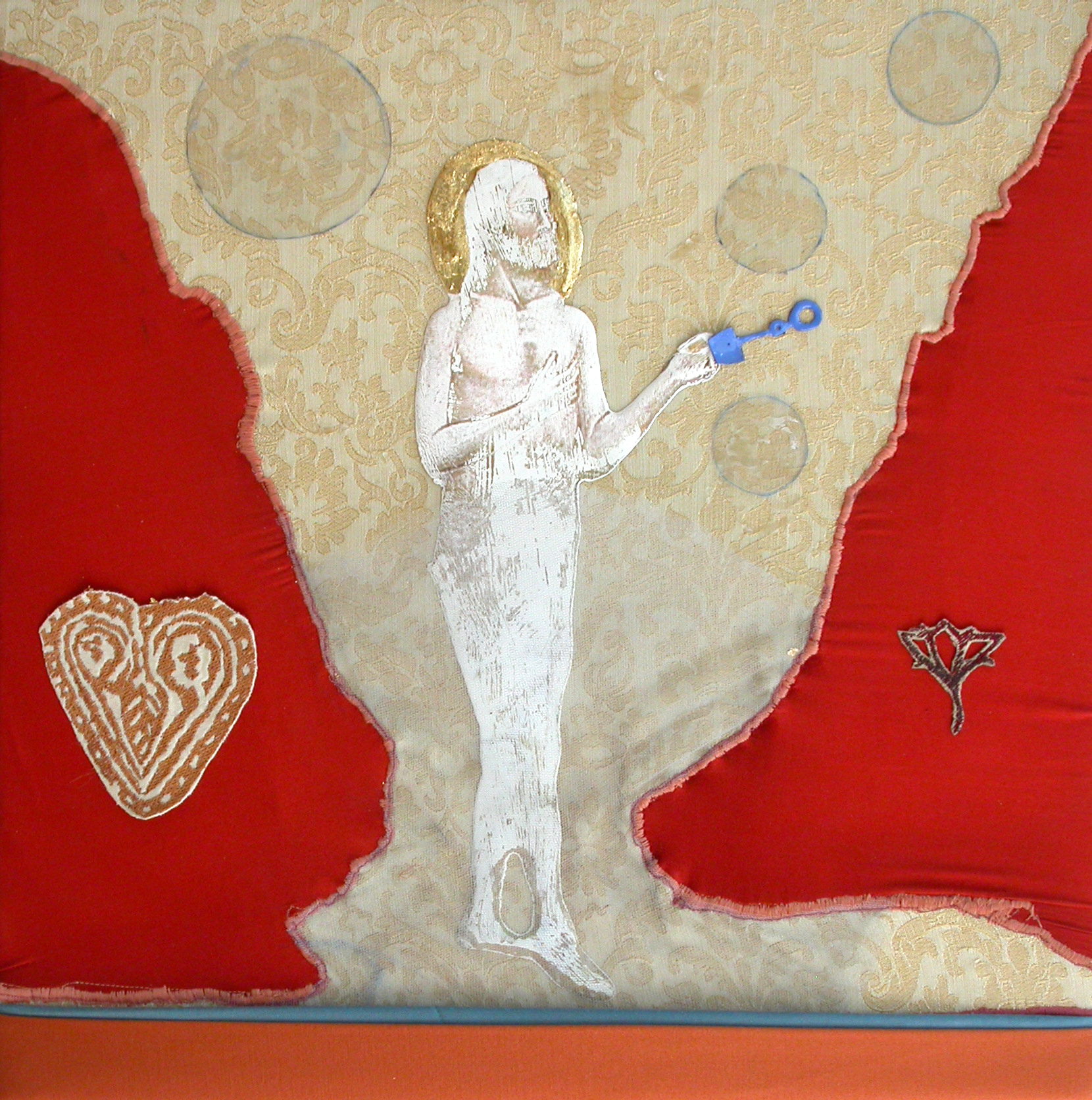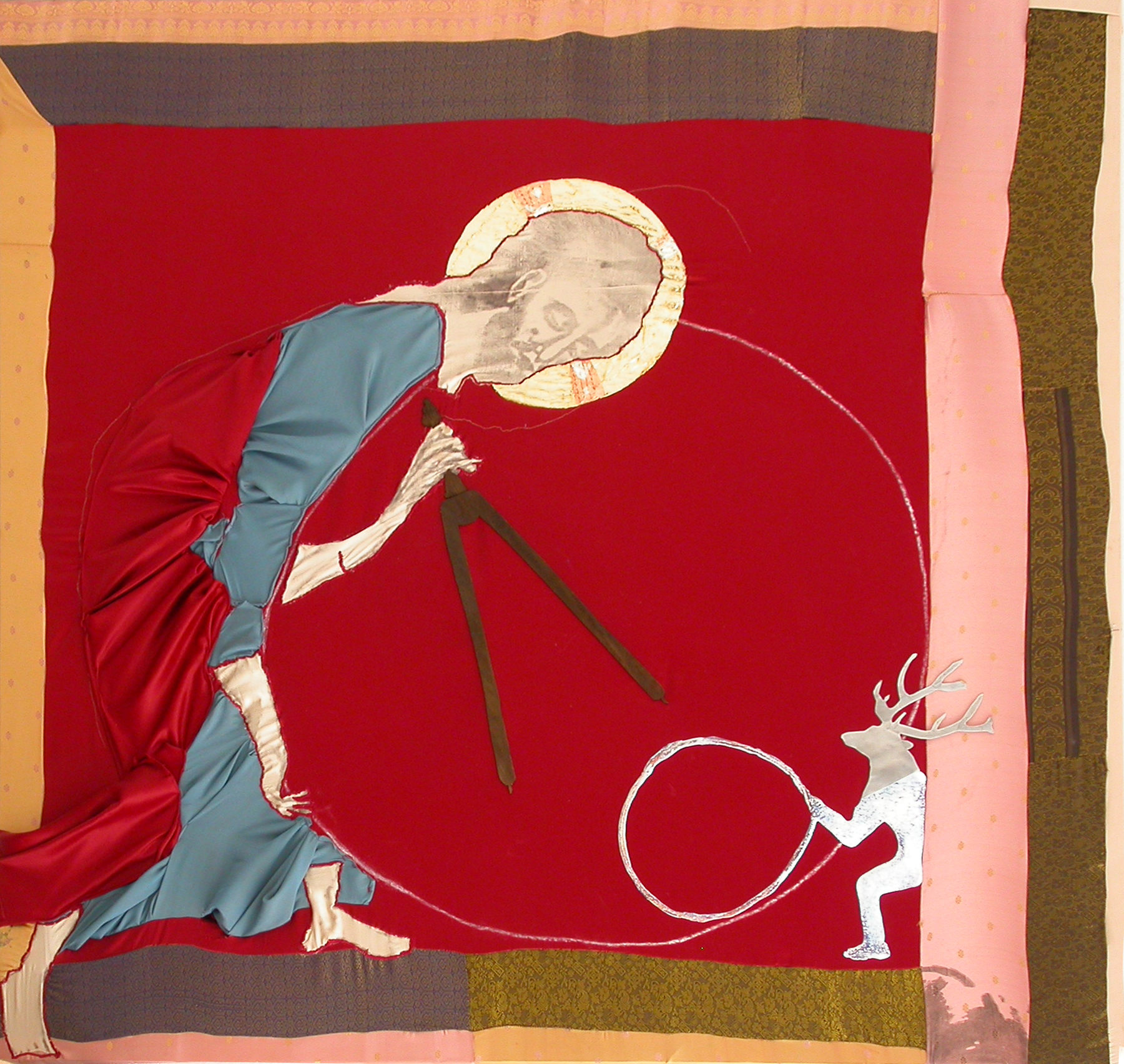 _2010_stampa transfert, ricamo, colla, foglia d’argento, lana su stoffa_18x18cm.