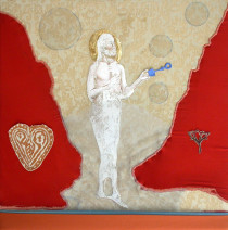 _2102_acrilico, pirografia su legno, ricamo su seta_130x130cm.