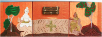 In Gesù Presocratico vs Giotto la mano del pittore viene mossa dal divino per eseguire il famoso cerchio per- fetto di Giotto: lo stesso cerchio eseguito sulla stoffa rossa nel video, diventa nel quadro la misura per il dio che…