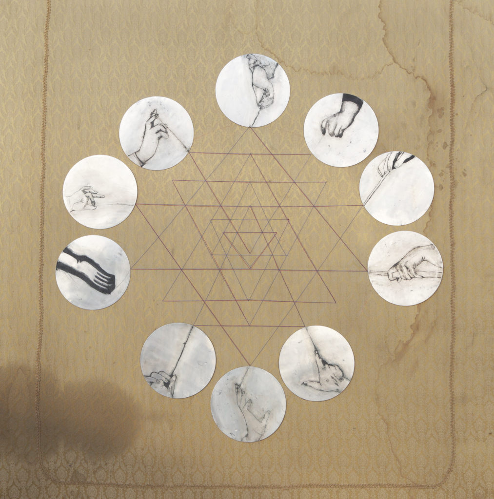 Una serie di opere tessili in forma di stella, ognuna dedicata a una delle quattro categorie del gioco secondo Roger Caillois: competizione (Agon), caso (Alea), simulazione (Mimicry), vertigine (Ilinx). Al centro di ogni stella, una mudra — gesto simbolico del…