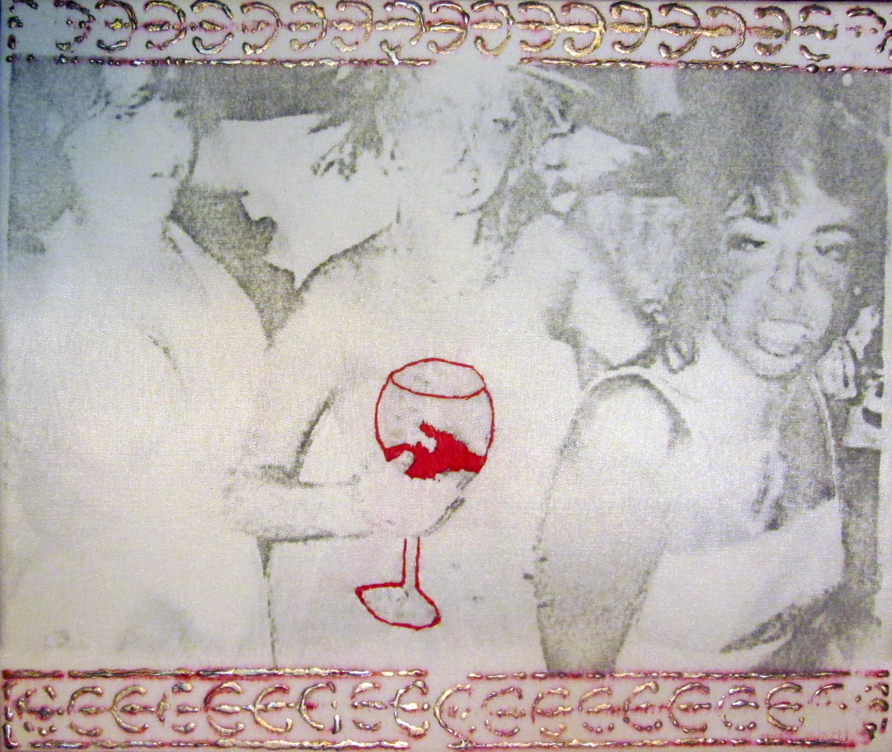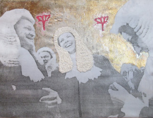 _Le 3 grazie_2015_stampa transfert, colla, foglia d’oro e ricamo su raso_35x35cm.