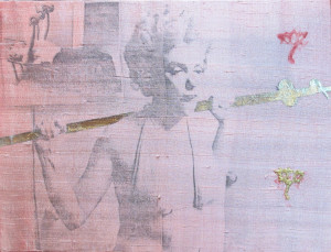 _Corpo di diva_2015_stampa transfert, colla, foglia d’oro e ricamo su seta_35x35cm.