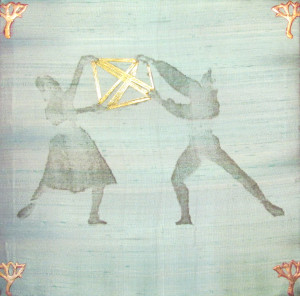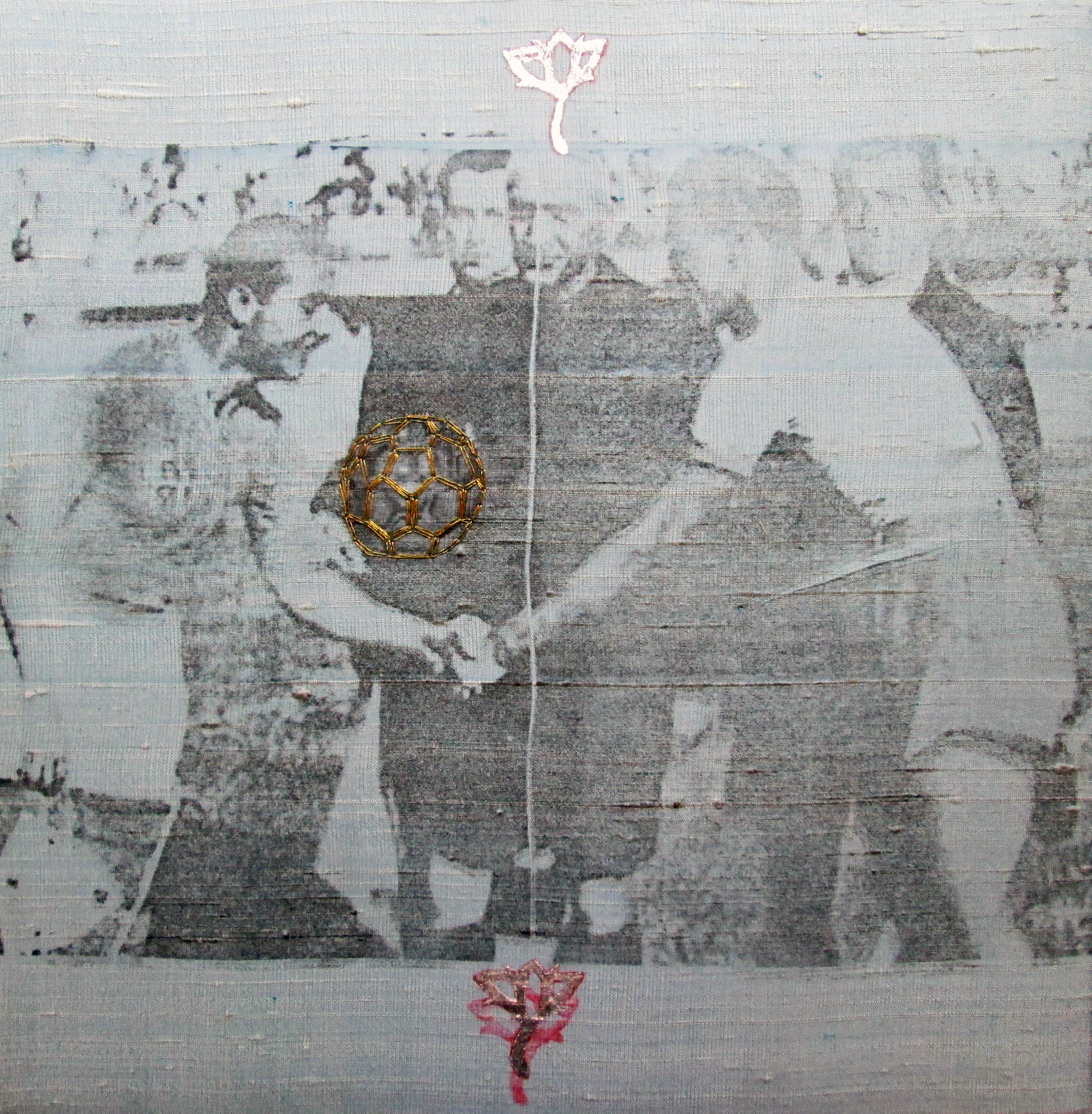 _Perfetta danza_2015_stampa transfert, colla, foglia d’oro e ricamo su seta_35x35cm.