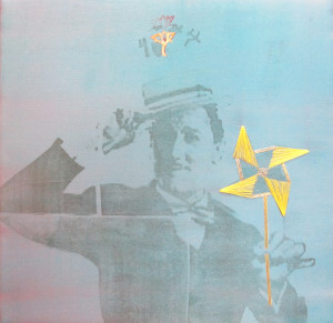 _Giro di vento_2015_stampa transfert, colla, foglia d’oro e ricamo su seta_35x35cm.