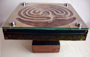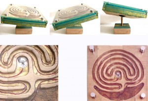 Il mito classico con un giuoco che rappresenta un labirinto cretese. In esso è semplice entrare, la complessità è ritrovare l’uscita. Il labirinto è l’ io in cui si entra per osservarsi, poi uscire significa comprendersi,dividere e poi unire ancora quei molti per andare in un’unica direzione e per trovare una via.