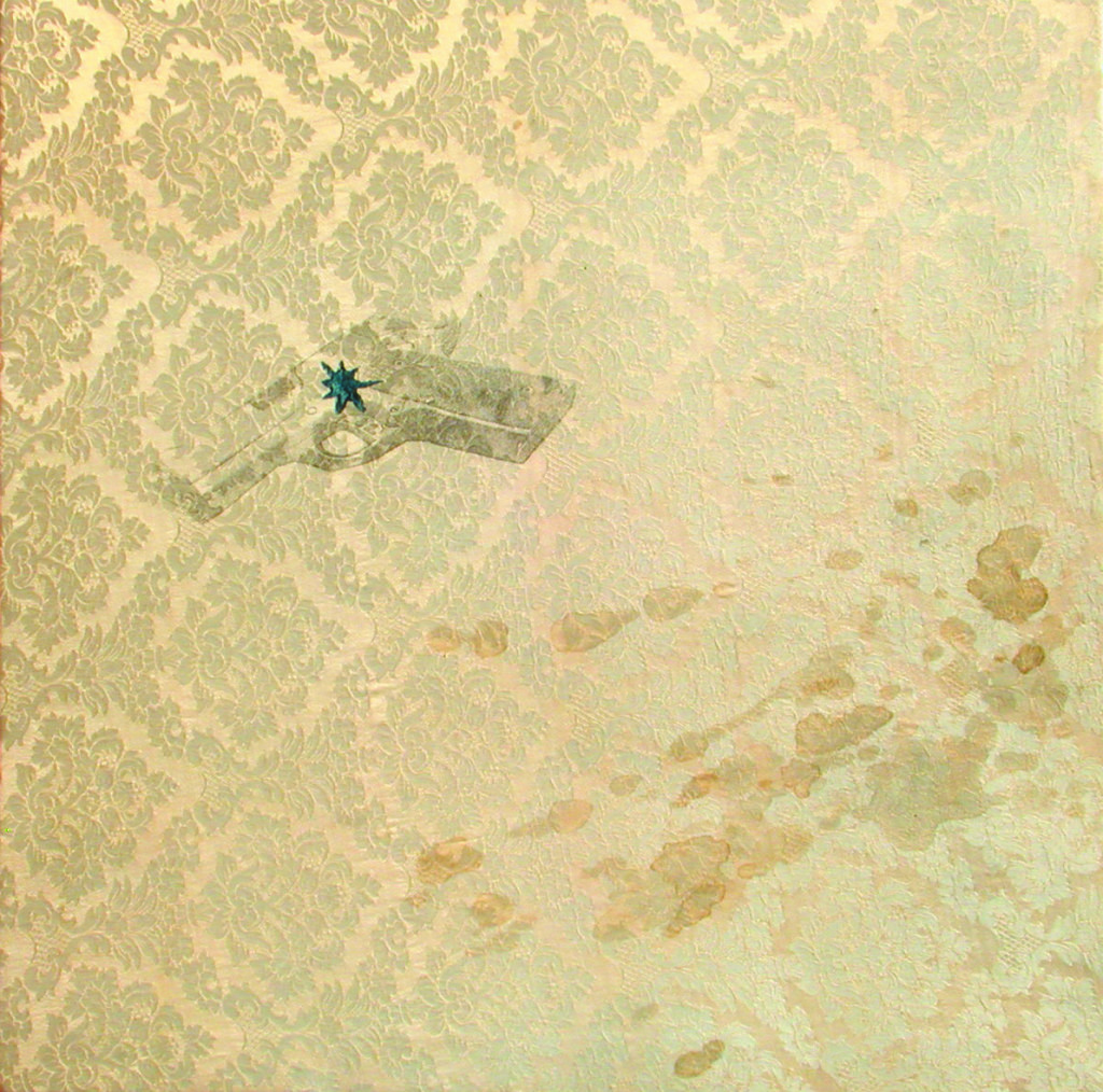 Arma#1_2003_stampa transfert e calcografica su damasco_80x80cm.