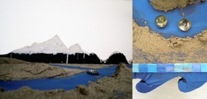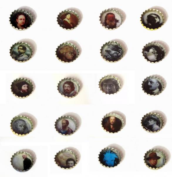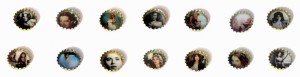 _Perfetta danza_2015_stampa transfert, colla, foglia d’oro e ricamo su seta_35x35cm. _Regole del giuoco_2015_stampa transfert, colla, foglia d’oro e ricamo su seta_35x35cm. _Le 3 grazie_2015_stampa transfert, colla, foglia d’oro e ricamo su raso_35x35cm. _La legge dei balocchi_2015_stampa…
