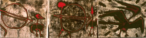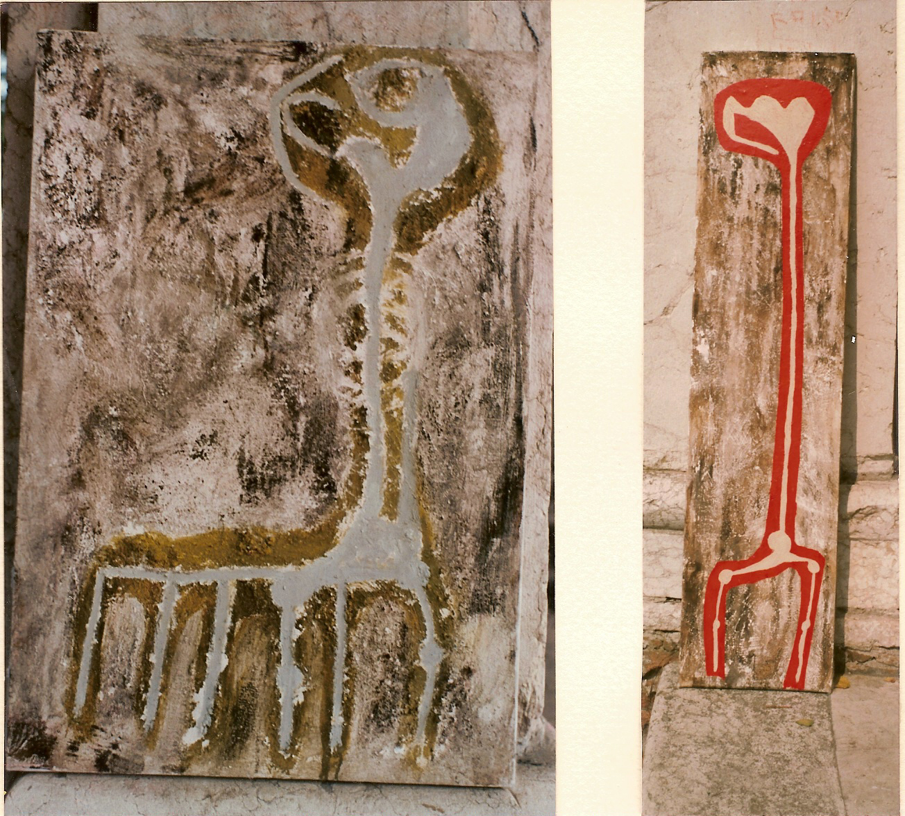 Primitivi #1 _1996_sabbia, terra, colla, smalto su iuta_60x80cm 1996_sabbia, terra, colla, smalto su tela_60x80cm. 1996_sabbia, terra, colla, catrame, smalto su tela_50x210cm.