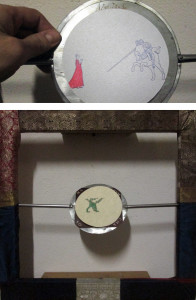 _2014_S.Giorgio e il drago_seta, zinco, penna gel su cartoncino, cavo d’acciaio_50x50x20cm.